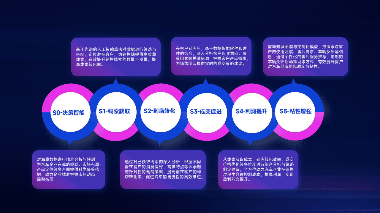 通过拓宽潜在客户来源、、、优化线索分配并提高到店转化率,,,,以增强销售效率。。。同时,,,利用线索数据不断优化分析模型,,,有效提升转化率,,扩大营销影响力。。。。